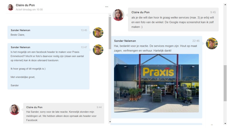 Dit bewijsstuk laat zien dat ik een nieuw idee heb voorgesteld (namelijk actief zijn op sociaal media) en op creatieve wijze verbeteringen heb doorgevoerd. Ik heb gezocht naar content maker binnen praxis en verzocht of zij een header had voor onze facebook.