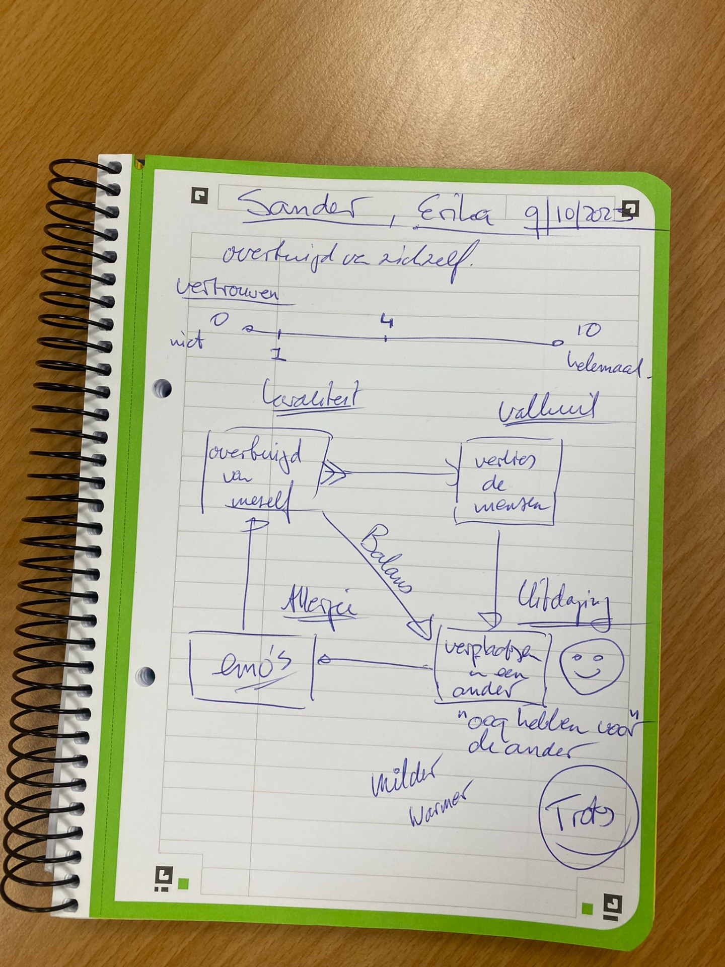 In het tweede leerjaar hebben Arnold, Erica en ik een leerdoel voor het hele jaar opgesteld. Ik heb dit als een goed maar moeilijk gesprek ervaren. Goed omdat ik achteraf gezien er veel van heb geleerd en persoonlijk ontwikkeld heb, Ik vond het gesprek ook moeilijk omdat je op dat moment word geconfronteerd met je eigen gedrag. We kwamen er achter dat ik overtuigd was van mezelf. Hierdoor bleek in het gesprek dat ik daardoor mensen verloor. Mijn uitdaging was uiteindelijk om mij te verplaatsen in een ander of terwijl 'oog hebben voor een ander'. Soms was ik doelgericht en was ik zelfstandig bezig, waardoor ik mensen verloor. Door meer om te kijken naar en ander kunnen we echt als team werken. Op dat moment vond ik het echt een moeilijk en zelfs niet leuk gesprek, maar uiteindelijk heeft het mij ver gebracht. Soms hoef je echt niet continu hard te werken. Er heeft mij ook een tegeltje bijgestaan, dat is; alleen ga je sneller, samen kom je verder. Dat is ook nog een uitspraak geweest van Nelson Mandela.