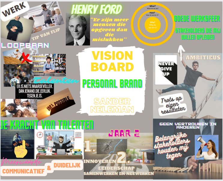 Het idee van een vision board spreekt mij erg aan omdat het helpt om concrete doelen en ambities visueel te maken en dit kan leiden tot meer focus en motivatie. In deze tekst wordt het idee van een vision board ook goed uitgelegd. Het is mooi om te zien hoe de persoon in kwestie zijn talenten, competenties en doelen op een overzichtelijke manier in kaart brengt. Ik denk dat het heel waardevol kan zijn om op deze manier inzicht te krijgen in jezelf en wat je wilt bereiken. Ook de manier waarop deze persoon zijn ambities uitwerkt in concrete doelen en competenties vind ik heel inspirerend. Het stimuleert mij om ook na te denken over mijn eigen doelen en hoe ik deze kan vertalen naar concrete stappen die ik kan zetten om deze te bereiken.